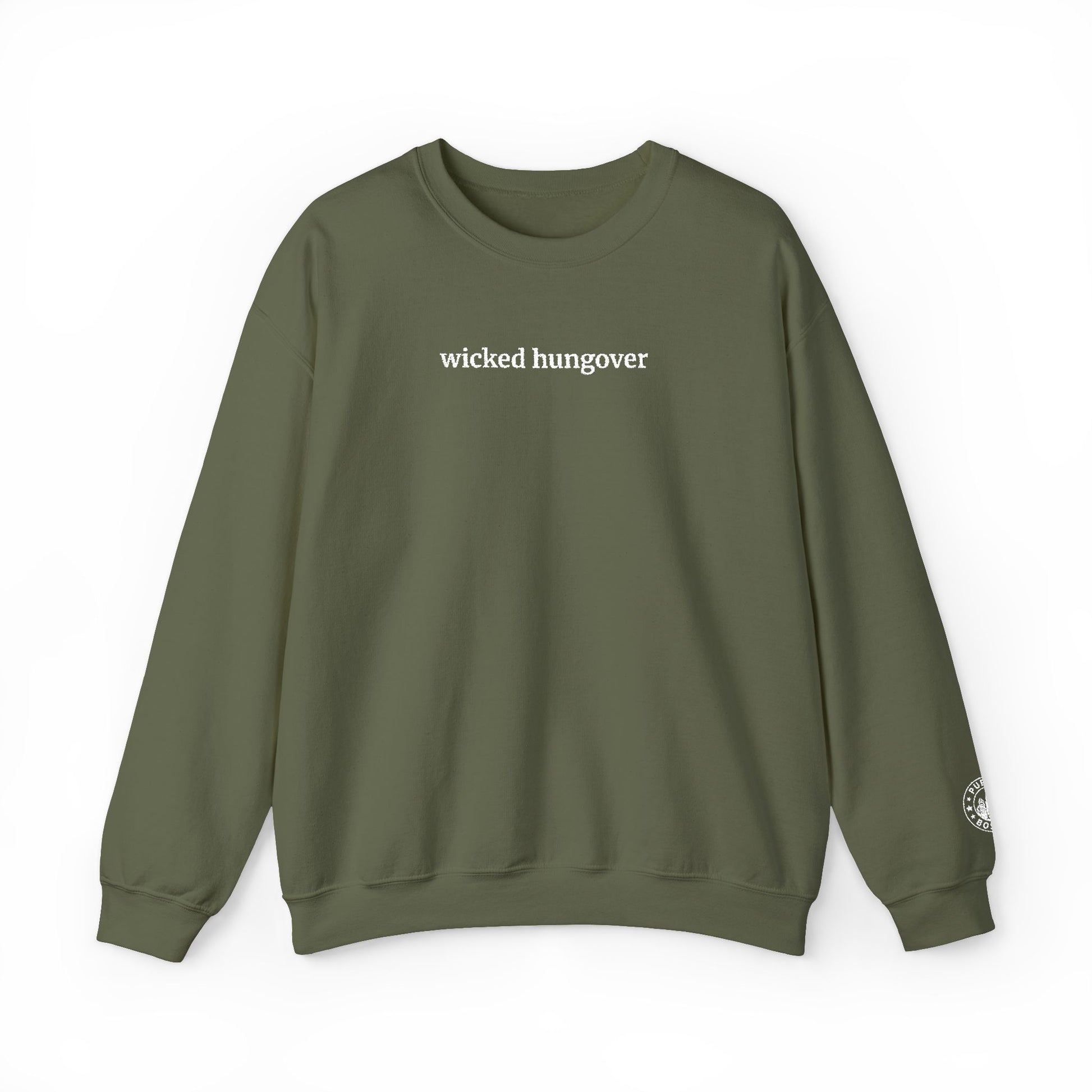 Wicked Hungover Embroidered Military Green Crewneck